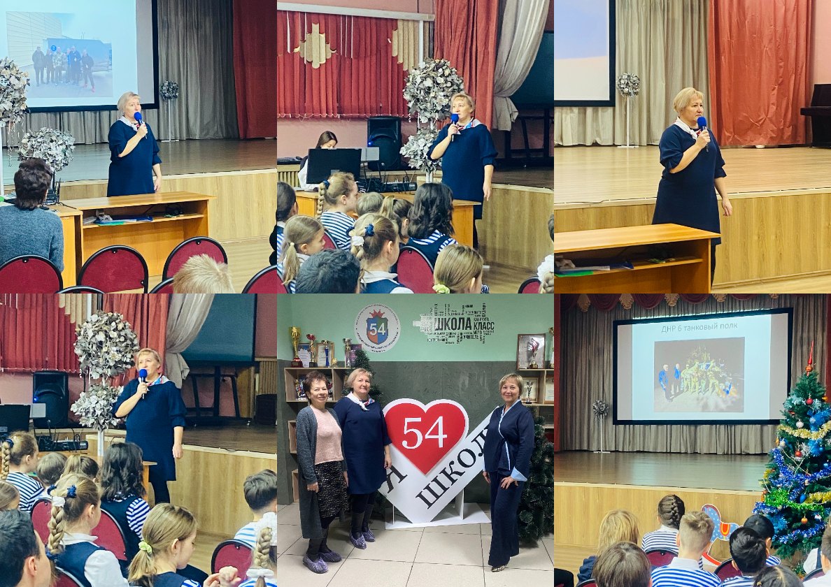 17 ноября 2025 года ученики 8 и 9 классов МБОУ "СОШ №54 г. Челябинска" приняли участие в акции, проводимой фондом "Будущее Отечества" имени Поляничко. Учащиеся встретились с участниками СВО, посмотрели документальный фильм и мобильную экспозицию "Челябинск СВОих не бросает", посвященные вкладу Челябинской области в СВО.