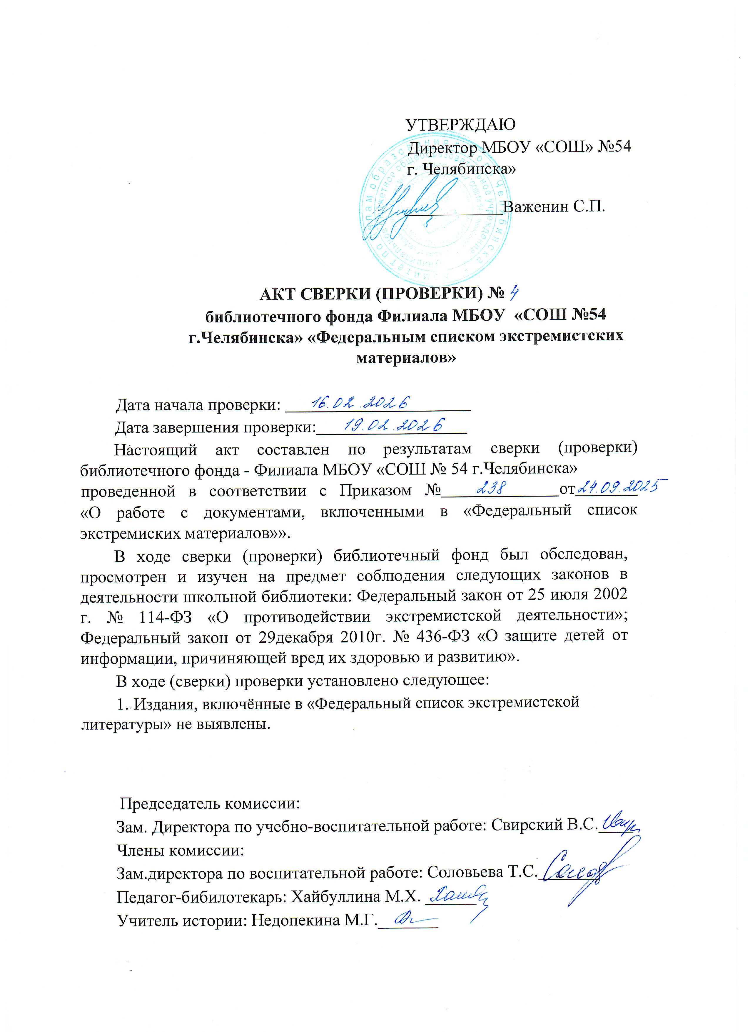 - Акт сверки №4 библиотечного фонда с " Федеральным списком экстремистских материалов" (скачать)