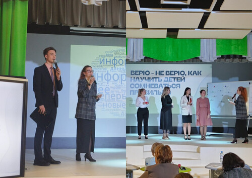 Наши участники представили тему «Фактчекинг», в которой акцентировали внимание на важности работы с информацией и развитии критического мышления у учеников через анализ ложных фактов. Они продемонстрировали, как ученики могут самостоятельно проверять достоверность информации в ходе урока, что является важным навыком в современном мире.